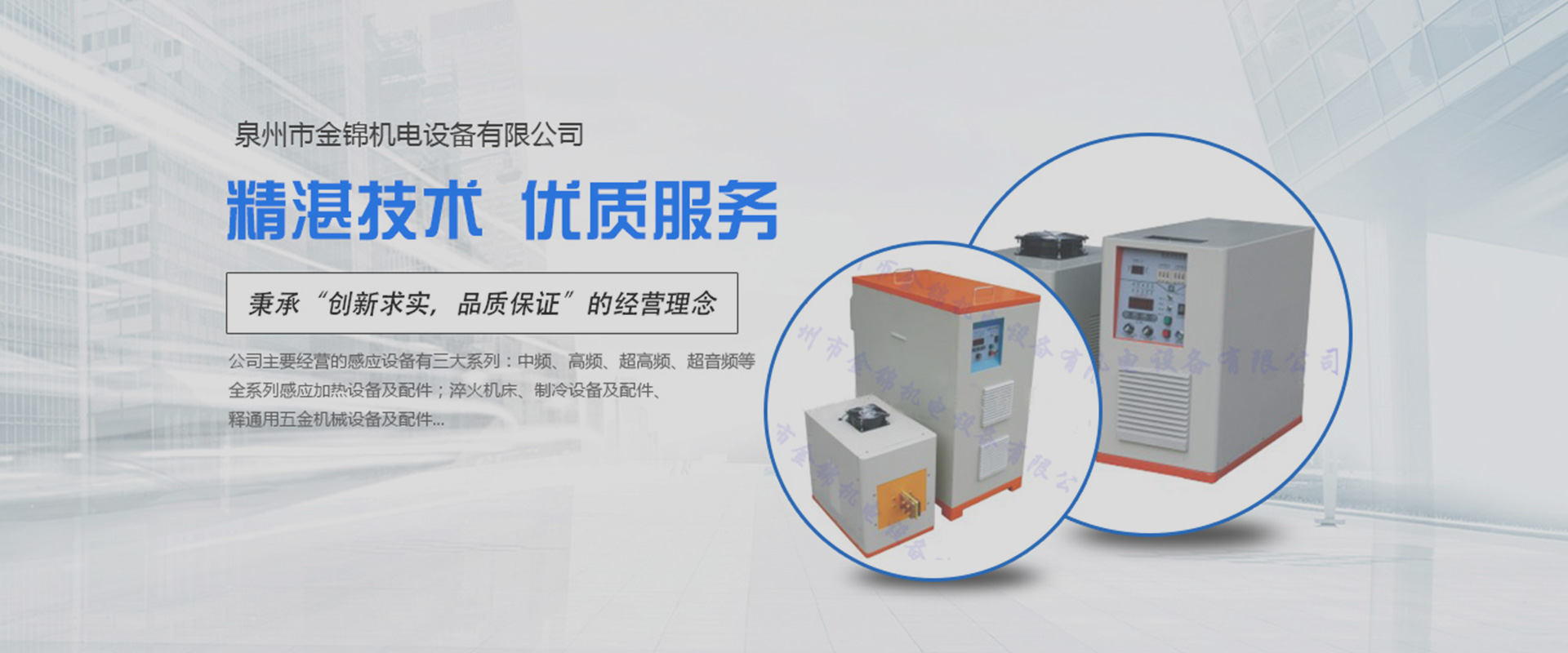 ??泉州市金錦機電設備有限公司,是一家專業生產銷售感應加熱設備與優化解決方案的高新技術企業。公司自2006年成立以來,以精湛的技術、優質的服務、優良的產品贏得了廣大用戶的認可和信賴。產品銷售于全國各地。公司一貫堅持“立足本職,敢于承擔”的工作作風,秉承“創新求實,品質保證”的經營理念,在感應加熱行業中不斷發光發熱…